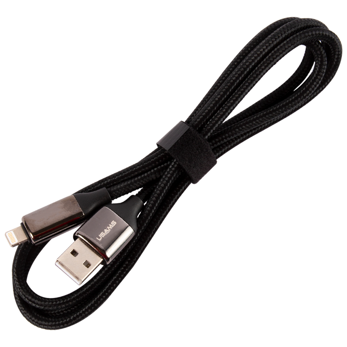 Дата-Кабель USAMS US-SJ543 U78 USB - Lightning, 2,4A (1,2 м), LED дисплей, нейлоновая оплетка, черный (SJ543USB01)
