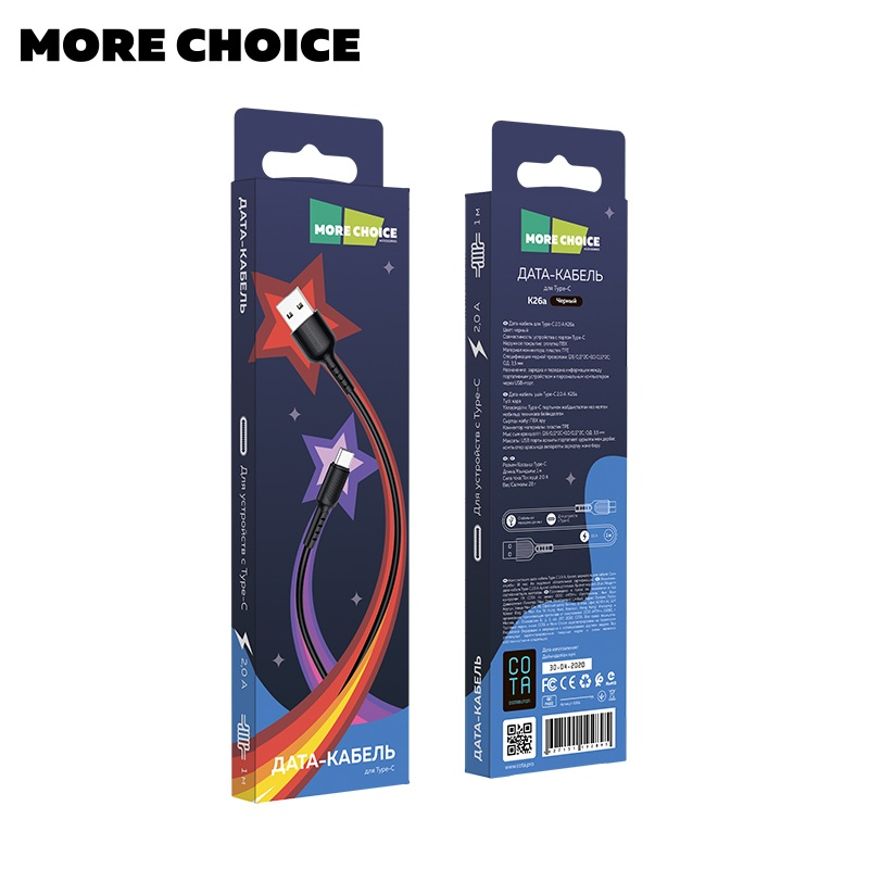 Дата-кабель USB 2.0A для Type-C More choice K26a TPE 1м (Black)