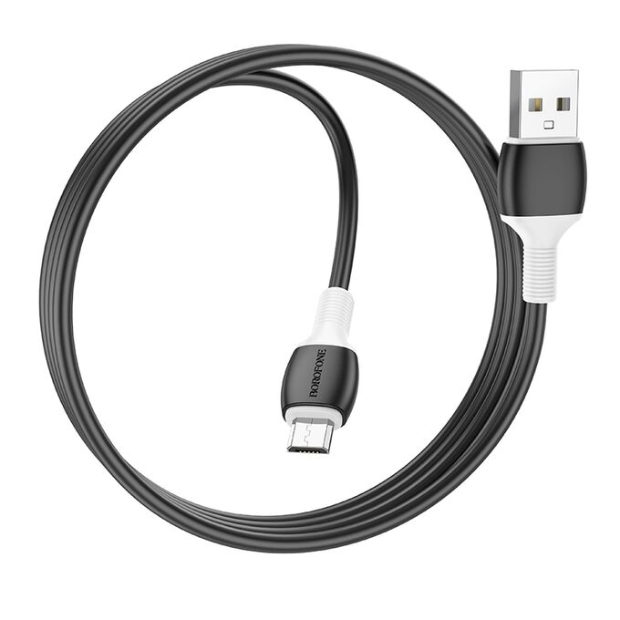 Дата-кабель USB 2.4A для micro USB Borofone BX84 ПВХ 1м (Black)