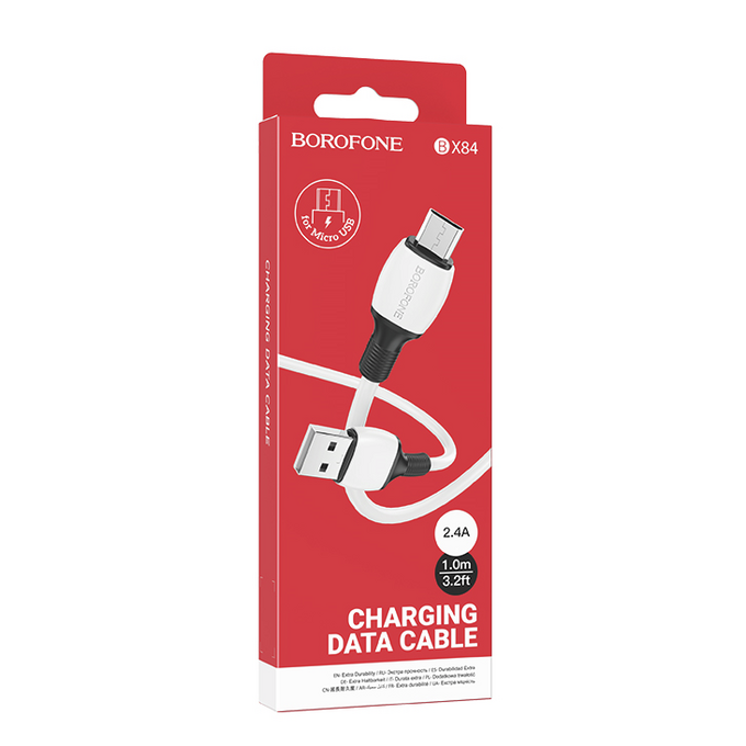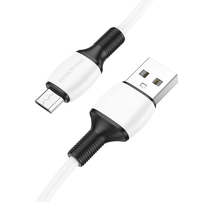 Дата-кабель USB 2.4A для micro USB Borofone BX84 ПВХ 1м (White)