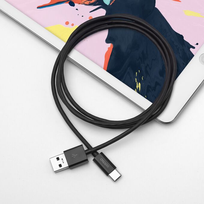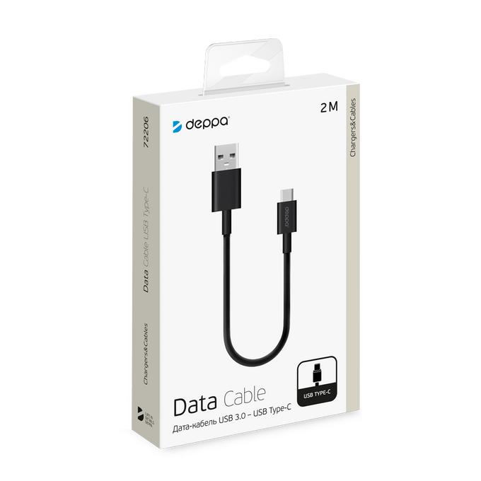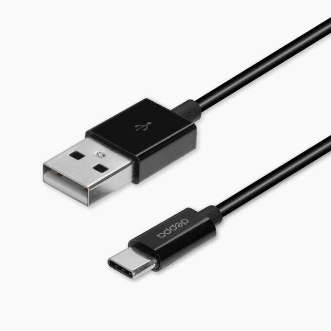 Дата-кабель USB A - USB Type-C, USB 3.0, 1.2м, черный, Deppa, 72206