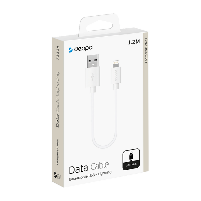 Дата-кабель USB - Lightning, 1.2м, белый, Deppa