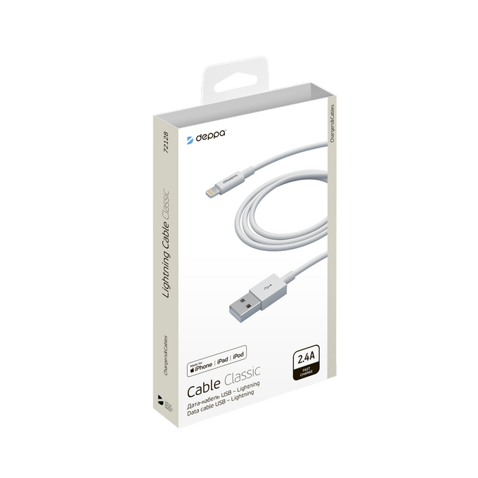 Дата-кабель USB - Lightning, MFI, 1.2м, белый, Deppa, 72128