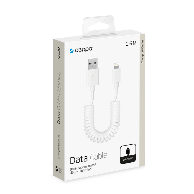 Дата-кабель USB - Lightning, витой, 1.5м, белый, Deppa, 72120