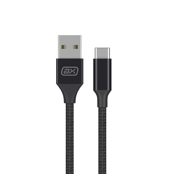 Дата-кабель USB - USB-C, 2А, 1м, нейлон, черный, Axxa