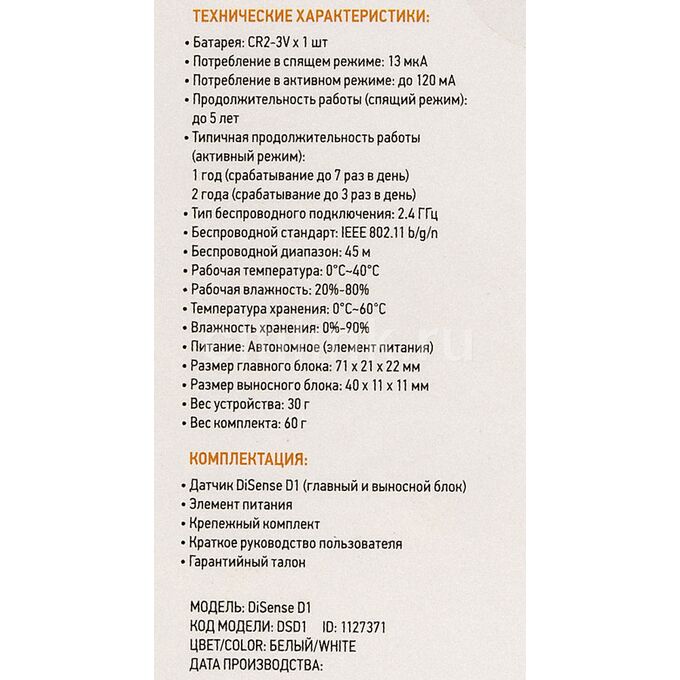Комплект поставки Датчик (главный и выносной блок), элемент питания, крепежный комплект, руководство пользователя, гарантийный талон.