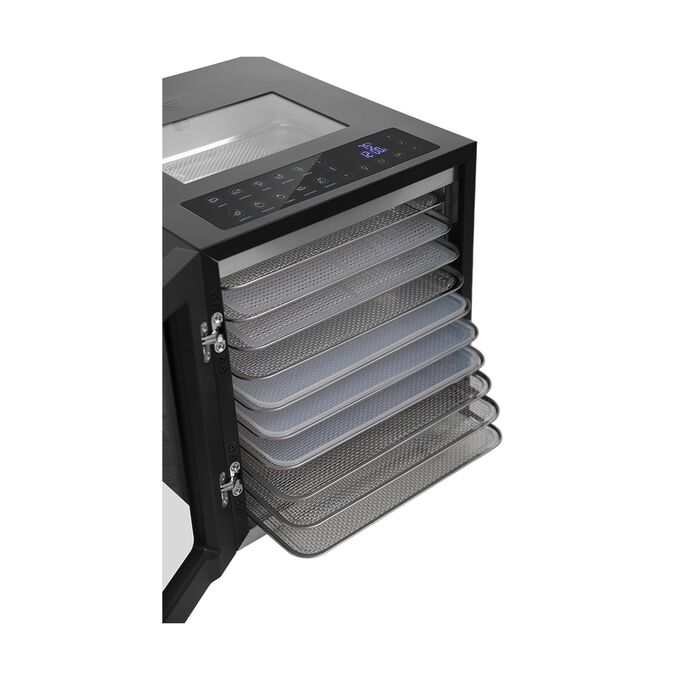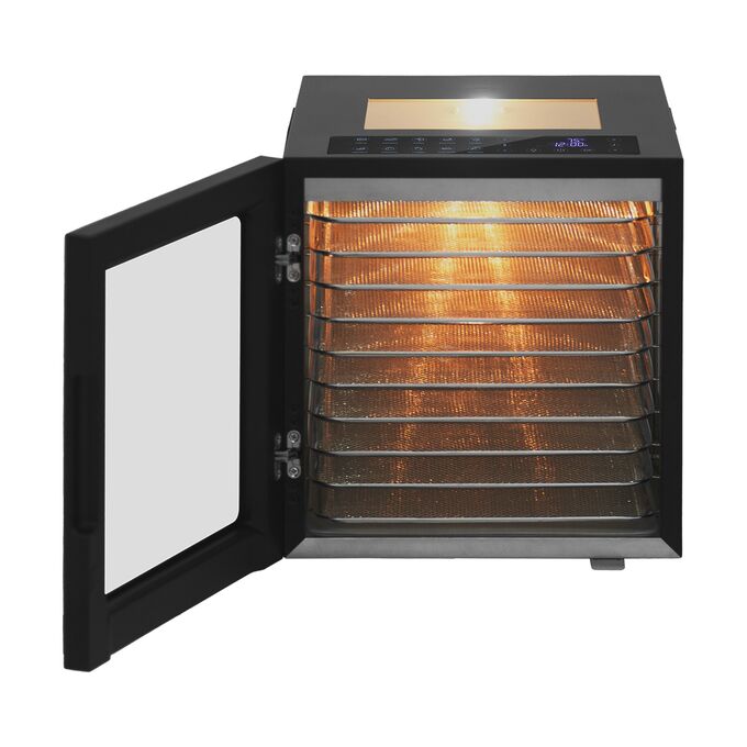 дегидратор, инструкция, книга рецептов, лоток для пастилы – 3шт, лоток для сбора капель – 1шт, поддоны – 10шт, сетчатые поддоны для трав и ягод – 3шт