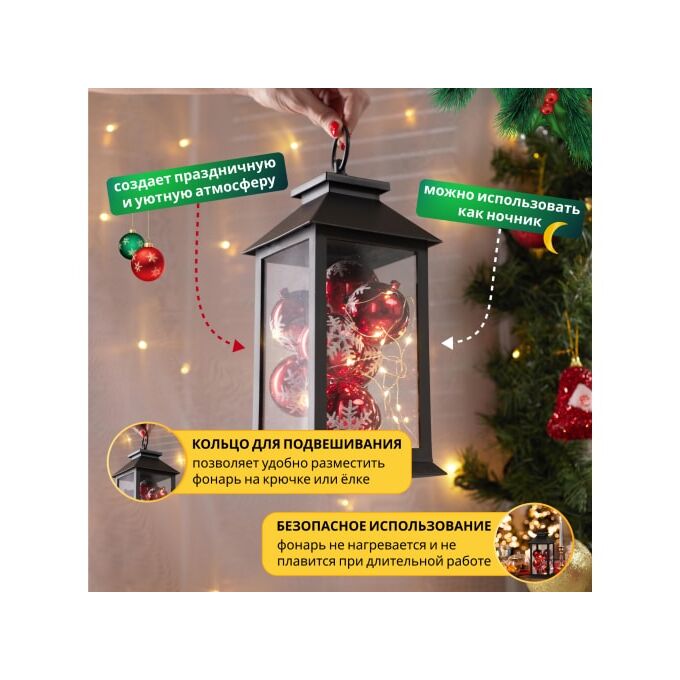 Декоративный фонарь с шариками Neon-Night 27 см, теплый белый 513-063 олицетворяет тепло и домашний уют в преддверии Нового года. Помогает сделать домашние вечера в кругу семьи комфортными и поднимает настроение окружающим.