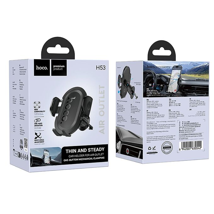 Держатель автомобильный Hoco гравитационный H53 Brusco в дефлектор (black) (240359)