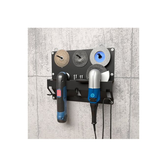 Настенный держатель для угловых шлифмашинок и отрезных дисков EMBODIMENT черный EMB-USM-DB-B помогает правильно организовать пространство и оптимизировать использование каждого сантиметра свободной площади. Кронштейн позволит легко и удобно расположить модели угловых шлифмашинок (УШМ) от 115 мм до 125 мм и станет идеальным местом их хранения в гараже, на балконе, складе и мастерской, кладовке и в других местах. Обеспечивает порядок на рабочем месте и быстрый доступ к инструменту, который легко можно достать для работы и по окончанию - вернуть на свое постоянное место.