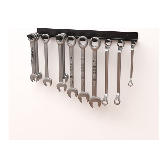 Кронштейн позволит легко и удобно расположить гаечные, накидные, комбинированные, разводные и ключи типа-S, став идеальным местом их хранения в гараже, на балконе, складе и мастерской, кладовке и в других местах.
