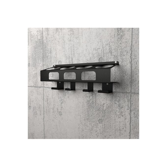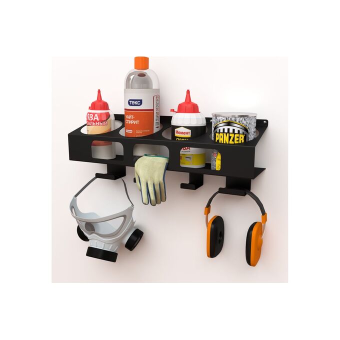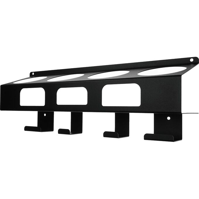 Настенный держатель-органайзер для покрасочных работ EMBODIMENT черный EMB-WOP-B помогает правильно организовать пространство и оптимизировать использование каждого сантиметра свободной площади. Кронштейн позволит легко и удобно расположить четыре баллончика аэрозольной краски, строительного клея или других предметов диаметром до 100 мм (R50) и станет идеальным местом их хранения в гараже, на балконе, складе и мастерской, кладовке и в других местах. Обеспечивает порядок на рабочем месте и быстрый доступ к инструменту, который легко можно достать для работы и по окончанию - вернуть на свое постоянное место.