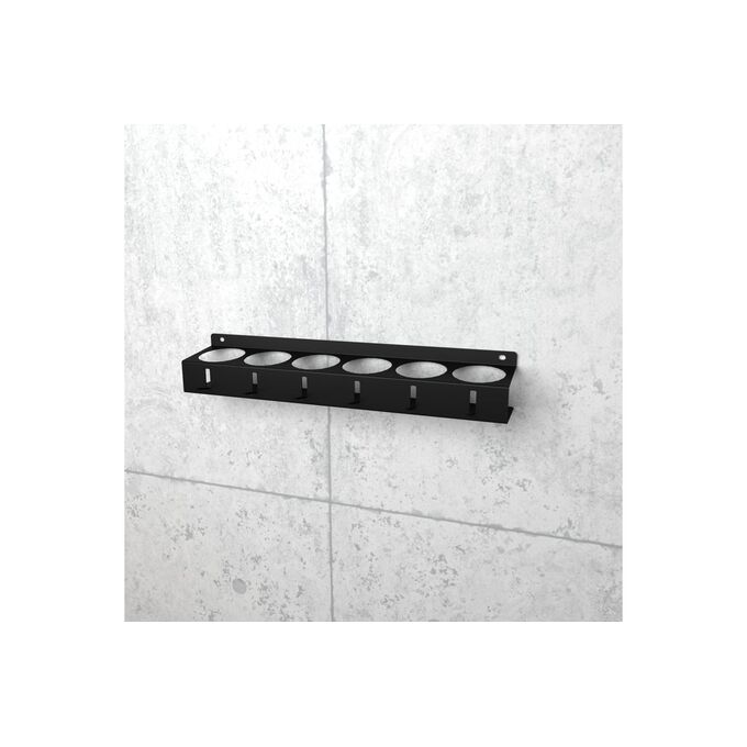 Настенный держатель-органайзер для баллончиков EMBODIMENT с крючками, черный EMB-WOP-L-B помогает правильно организовать пространство, и оптимизировать использование каждого сантиметра свободной площади. Кронштейн позволит легко и удобно расположить шесть баллончиков с краской, смазкой и другими техническими аэрозолей, диаметром до 72 мм и станет идеальным местом их хранения в гараже, на балконе, складе и мастерской, кладовке и в других местах. Обеспечивает порядок на рабочем месте и быстрый доступ к инструменту, который легко можно достать для работы и по окончанию - вернуть на свое постоянное место.