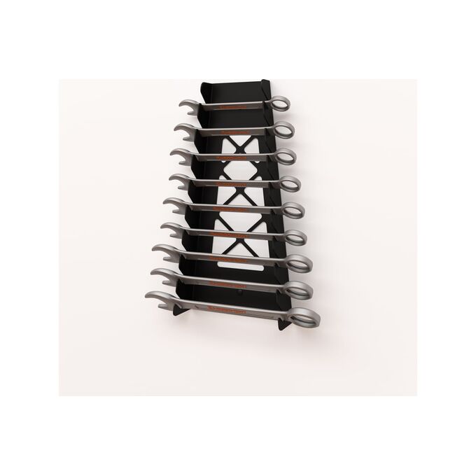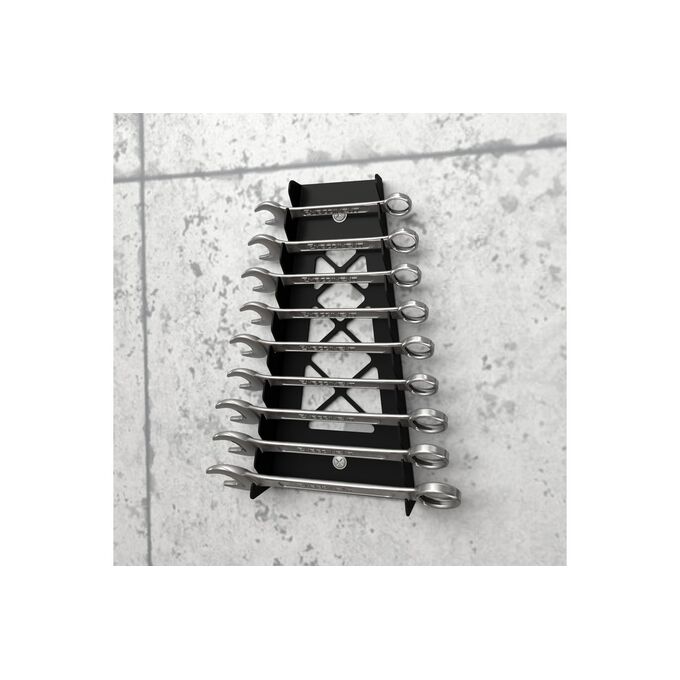 Настенный держатель-органайзер для гаечных ключей EMBODIMENT черный EMB-WOW-W-B поможет правильно организовать пространство и оптимизировать использование каждого сантиметра свободной площади. Кронштейн позволит легко и удобно расположить гаечные или накидные ключи от 5 до 40 мм и станет идеальным местом их хранения в гараже, на балконе, складе и мастерской, кладовке и в других местах. Обеспечивает порядок на рабочем месте и быстрый доступ к инструменту, который легко можно достать для работы и по окончанию - вернуть на свое постоянное место. Держатель имеет продуманную конструкцию, предусматривающую место для хранения девяти ключей.