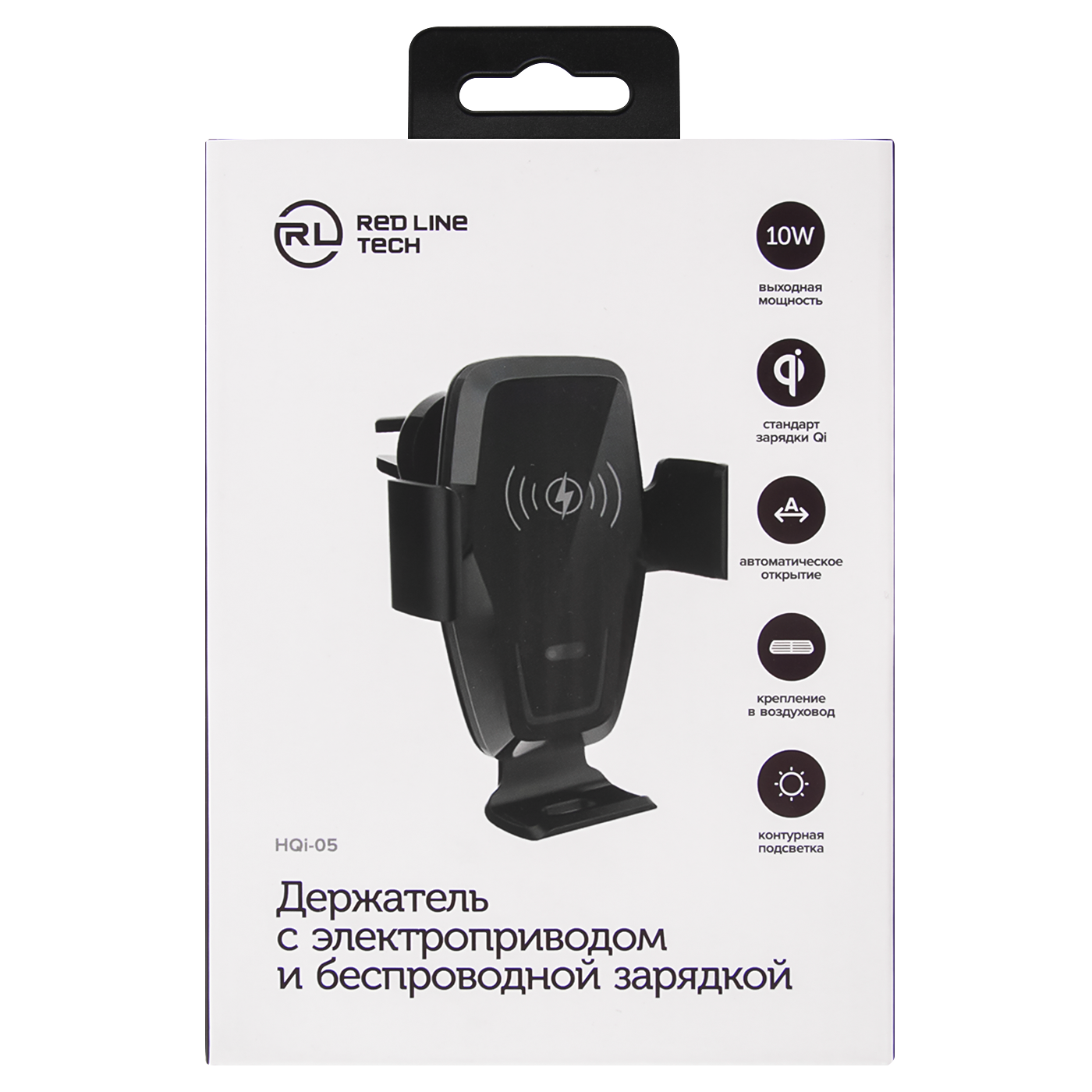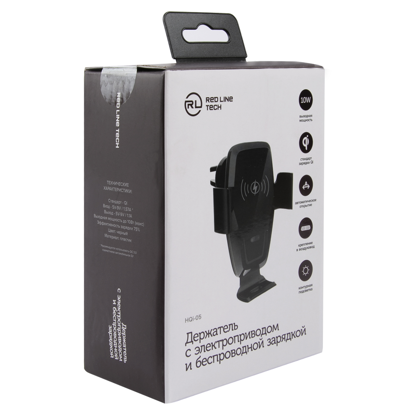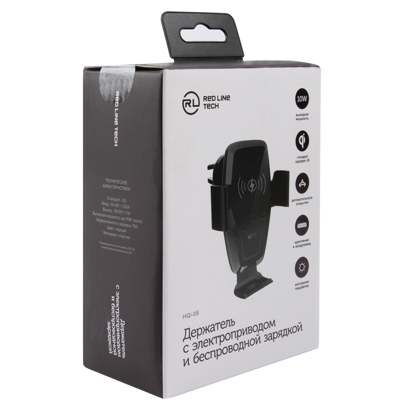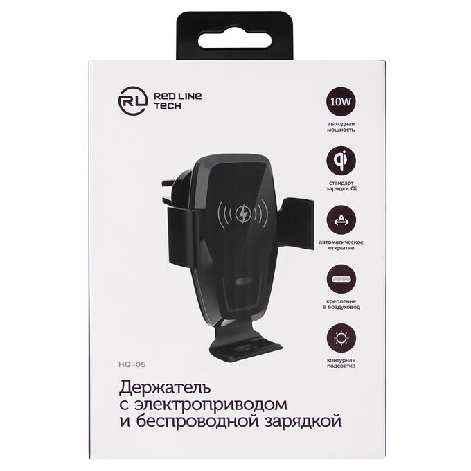 Держатель Red Line с беспроводной зарядкой и электроприводом, QI fast charge 10W, HQi-05, черный