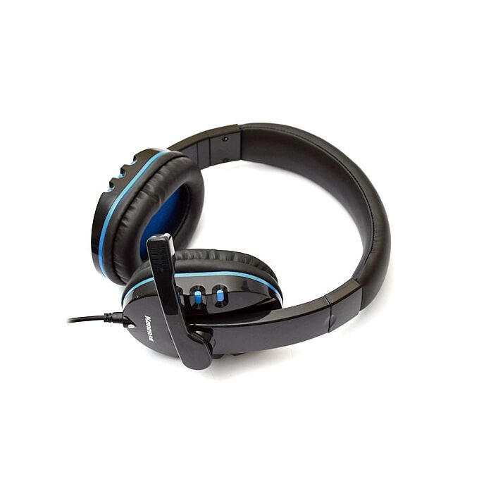 Полированный корпус из пластика черного цвета. Оголовье - регулируемое. Отделка амбушюров выполнена из синтетической кожи с поролоновым наполнителем. Большие 40 мм динамики. Крепление шнура - одностороннее. Регулируемый по углу наклона микрофон. Регулятор громкости на шнуре.