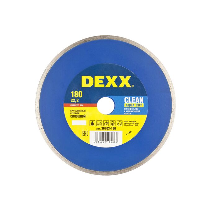 Диск алмазный DEXX 36703-180 Clean Aqua Cut 180мм отрезной сплошной по керамограниту, мрамору, плитке