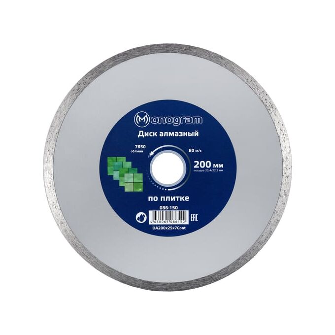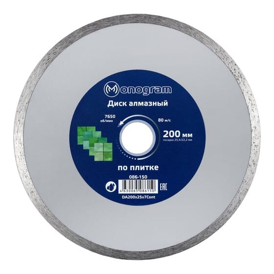Диск алмазный Monogram 086-150 по керам d-200мм dпосад-254мм угловые шлифмашины (упак 1шт)