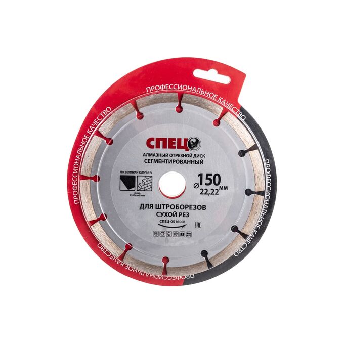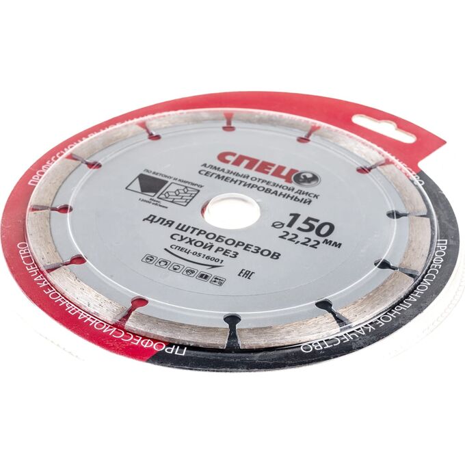 Диск алмазный отрезной сегментированный для штроборезов Спец Спец516001 150 22,2 1,8мм, сухой рез
