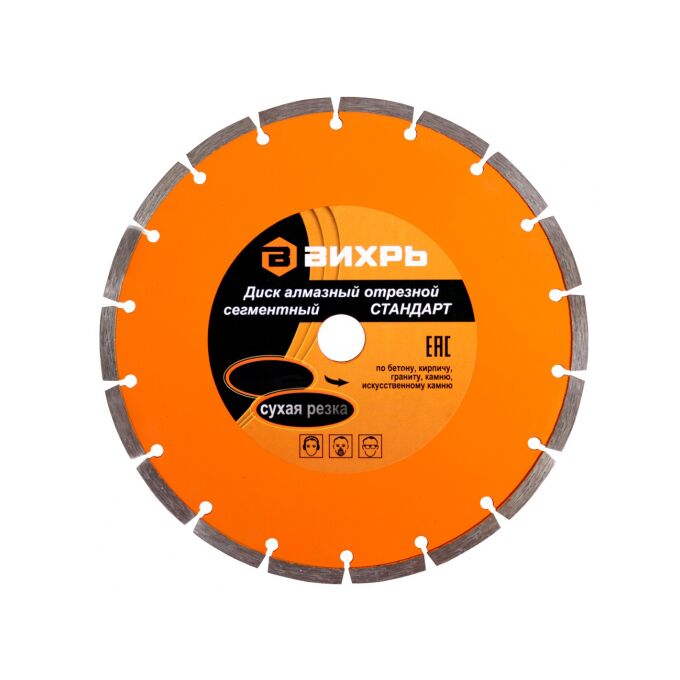 Диск алмазный отрезной сегментный Вихрь 73/10/3/15 Стандарт, 180 х 22,2мм, сухая резка