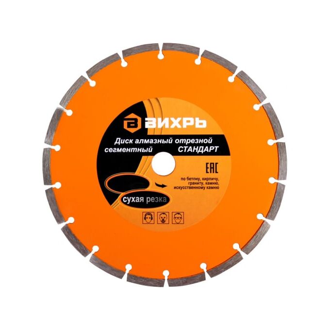 Диск алмазный отрезной сегментный Вихрь 73/10/3/16 Стандарт, 230 х 22,2мм, сухая резка