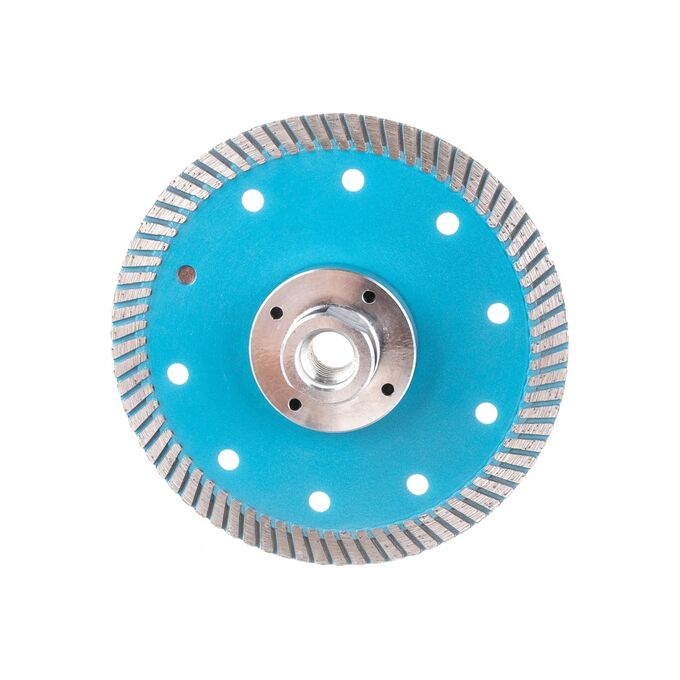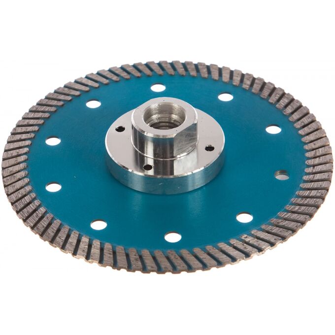 Особенности: фланец М-14 не только позволяет устанавливать данный диск на УШМ без зажимной гайки, но и значительно усиливает корпус диска, что дает возможность работать с материалом под любым углом, создавая дополнительные возможности в работе.