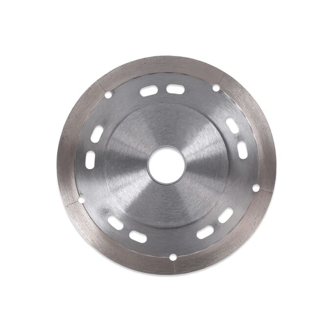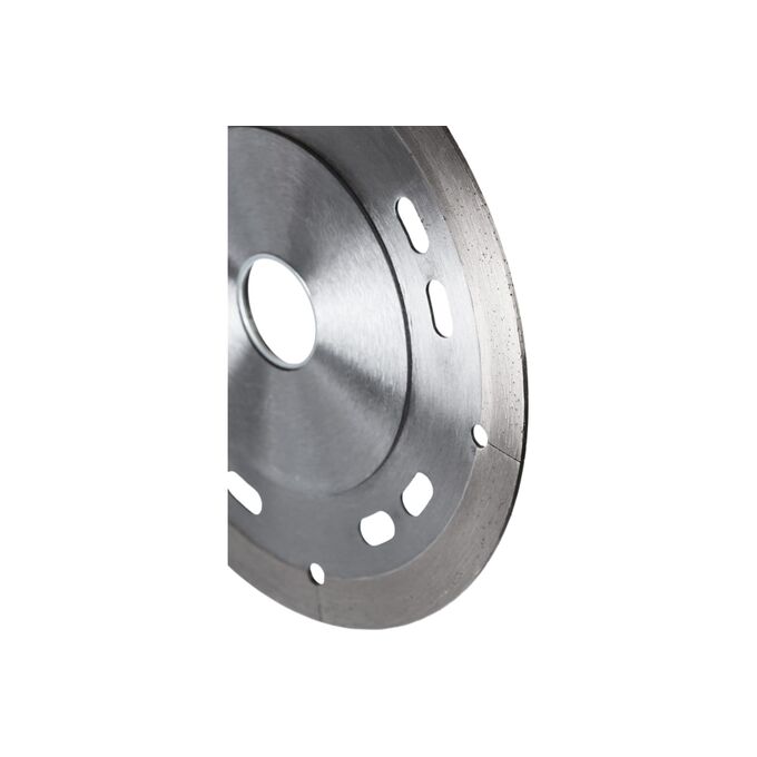 Ультратонкая алмазная кромка толщиной всего 1,2 мм обеспечивает точность резки даже с использованием УШМ. Высота кромки 10 мм дает возможность выполнять резку на всю глубину плитки без сколов. Компенсационные отверстия способствуют быстрому охлаждению диска. Усиленная форма корпуса обеспечивает высокоточную прямолинейную резку при небольшой толщине .
