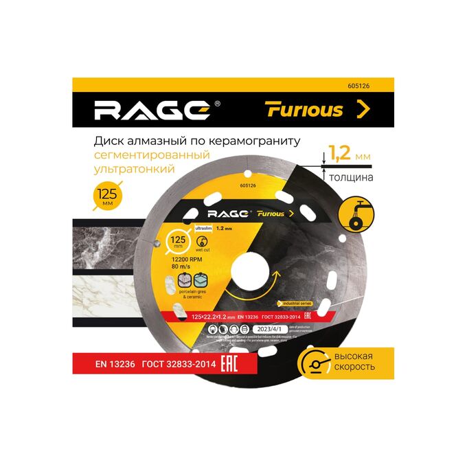 Диск алмазный по керамограниту сегментированный ультратонкий VIRA Rage Furious 605126 125 мм