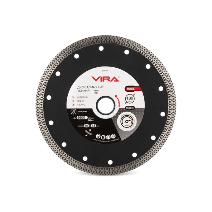 Диск алмазный по керамограниту тонкий VIRA Rage 605180 180 мм