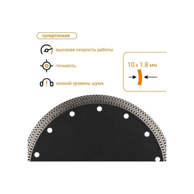 Диск имеет высокую концентрацию алмазов мелкой фракции, а также минимально возможную толщину в 1.2 мм, что обеспечивает высокую скорость реза и повышенную чистоту кромок.