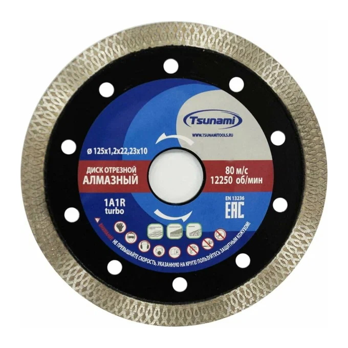Диск алмазный по керамогранитуTSUNAMI DD0020125022005 125x1,2x22,23x10 Тонкий горячего прессования