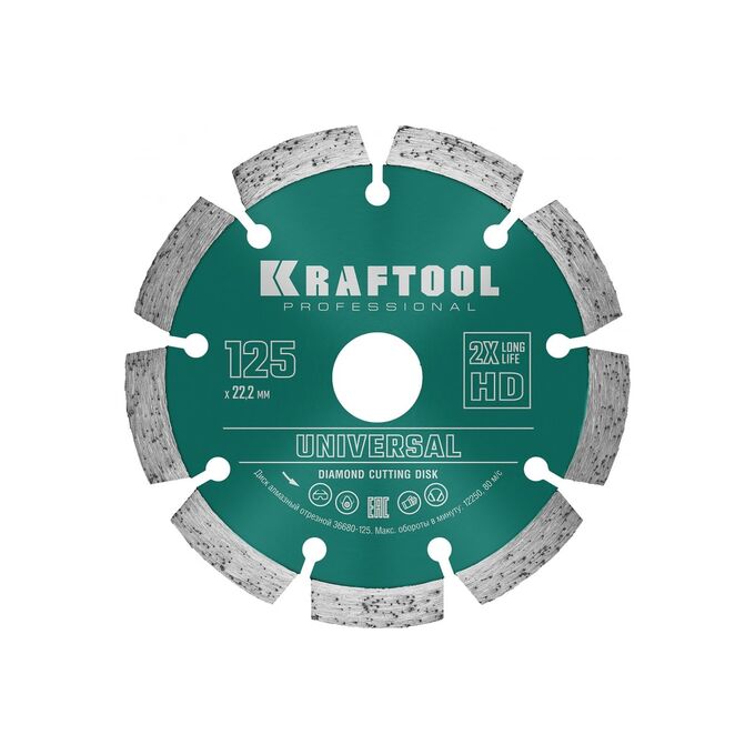 Технические характеристики сегментного диска алмазного по железобетону и бетону KRAFTOOL 36680-125