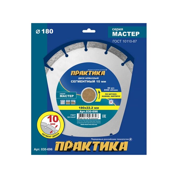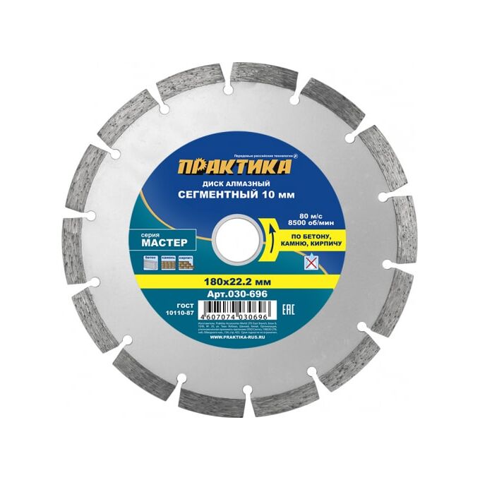 Диск алмазный сегментный Практика Мастер 180 х 22 мм (030-696) 1 шт/коробка