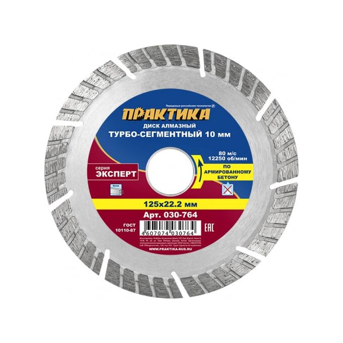Диск алмазный турбосегментный Практика Эксперт-бетон 125 х 22 мм (030-764) сегмент 10мм/1 шт/коробка