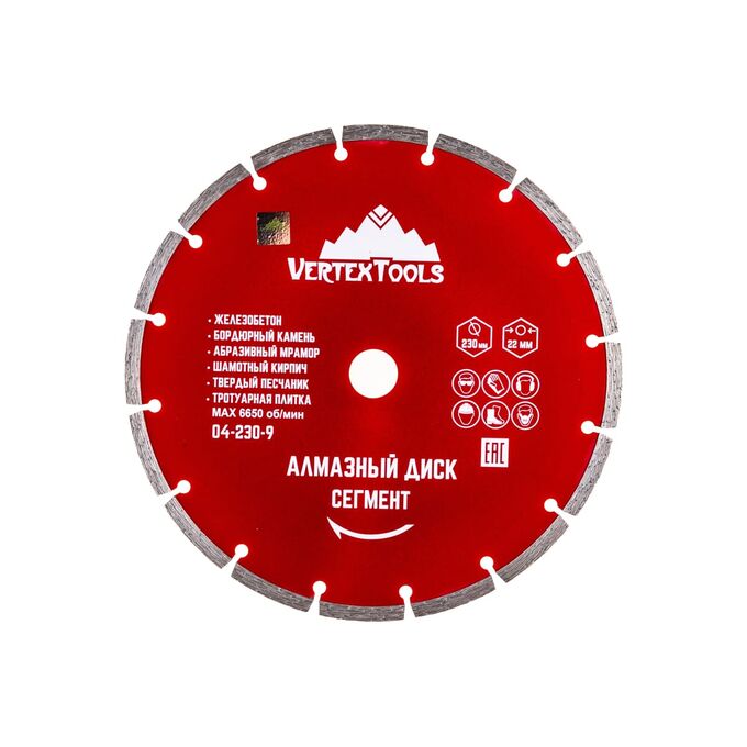 Технические характеристики сегментного алмазного диска vertextools 04-230-9