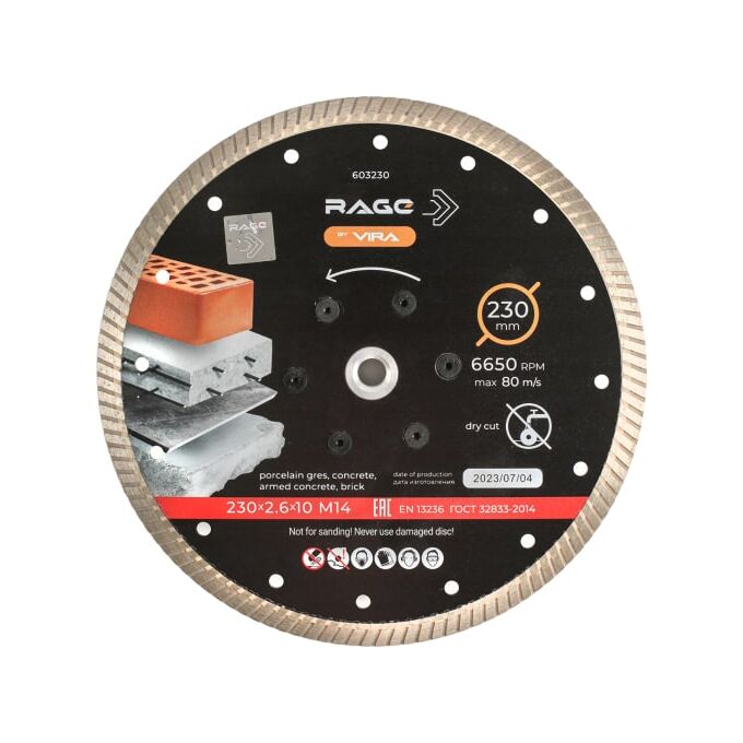 Диск алмазный VIRA rage by 603230 230 мм турбо с фланцем м14