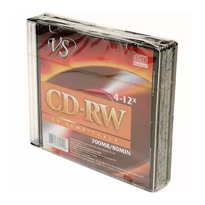 Диск CD-RW VS (VSCDRWSL501) 700 Mb, 12x, Slim Case (5), (5/200)