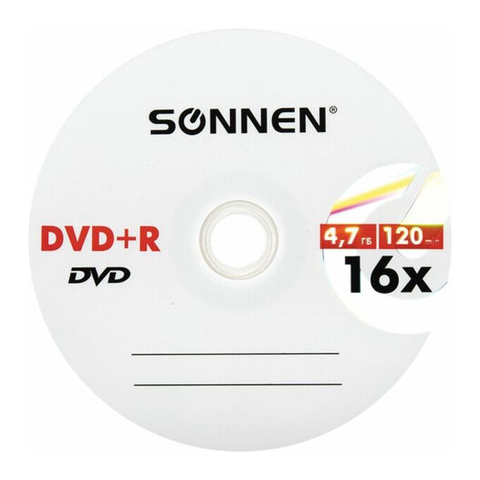 Диск DVD+R SONNEN 513532, 4,7Gb, 16x, Cake Box (упаковка на шпиле) 25шт