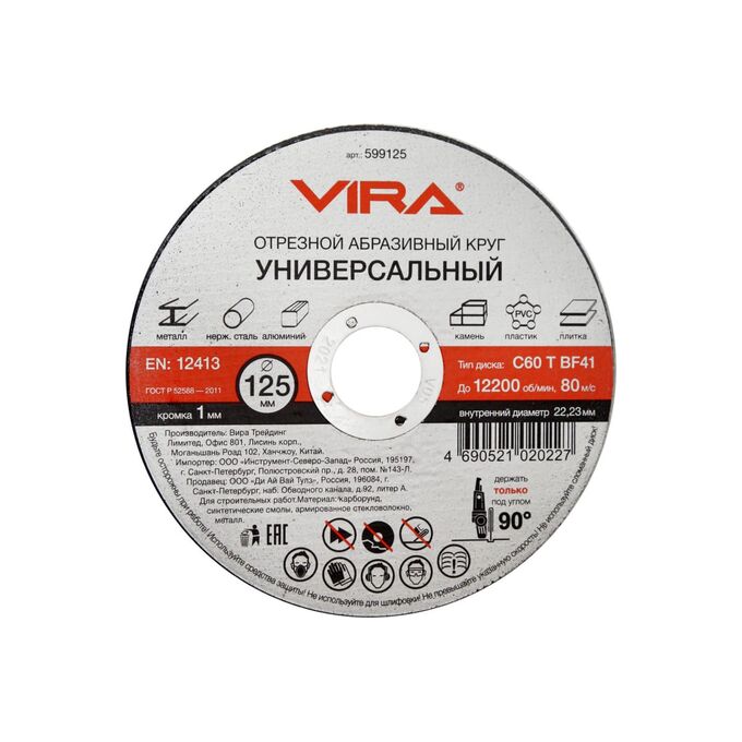 Технические характеристики универсального отрезного диска VIRA 599125-1