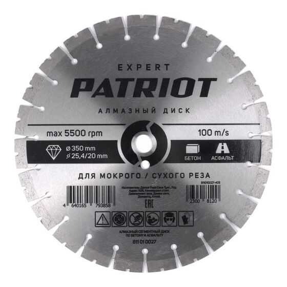 Диск PATRIOT Expert 811010027 350х25,4/20 Бетон/Асфальт