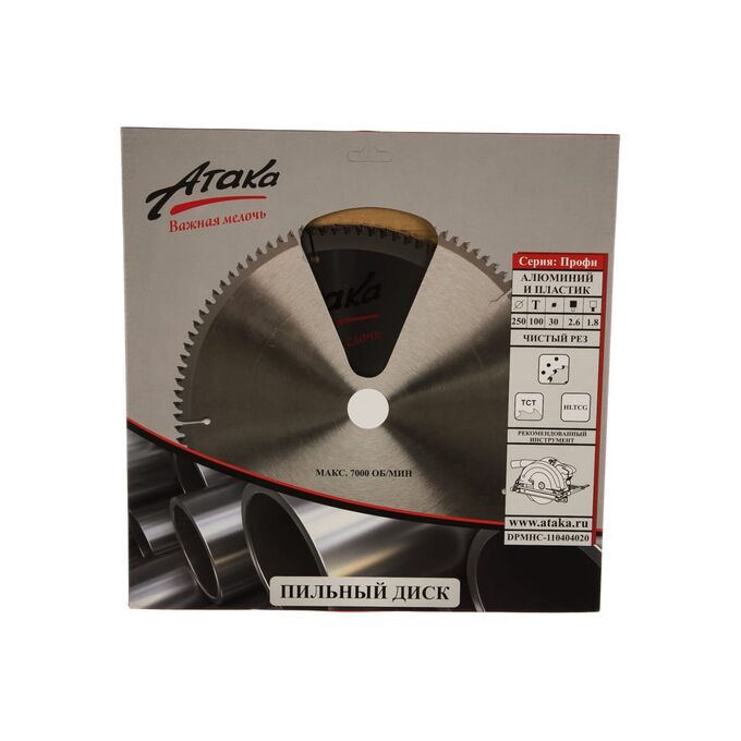 Диск пильный АТАКА 8077860 250*100T*30 алюминий пластик ч/рез профи
