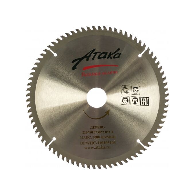 Диск пильный АТАКА 8079570 216*80T*30 дерево ч/рез профи