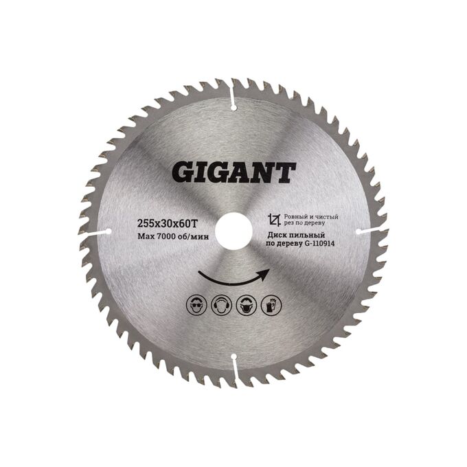 Диск пильный чистый рез по дереву Gigant G-110914 255x30x60Т