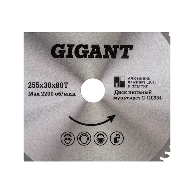 Диск пильный мультирез по алюминию, ламинату, пластику, ДСП Gigant G-110934 255x30x80Т 80 зубьев