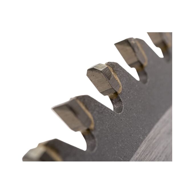 Отшлифованные зубья оснащены твердосплавными пластинами (ВК8), за счет чего появляется возможность распиливать даже особо прочные материалы, не теряя при этом качество реза.