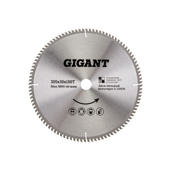 Диск пильный мультирез по алюминию, ламинату, пластику, ДСП Gigant G-110935 305x30x100Т 100 зубьев