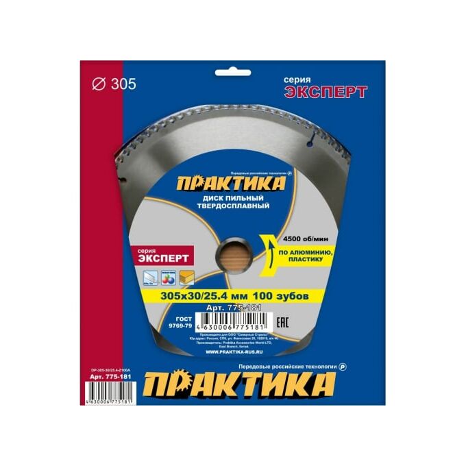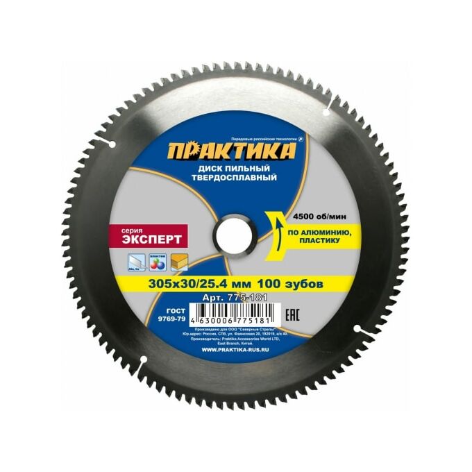 Технические характеристики диска по алюминию ПРАКТИКА 775-181