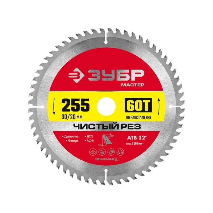 Диск пильный по дер. Зубр 36914-255-30-60_z01 d-255мм d(посад.)-30мм (циркулярные пилы)