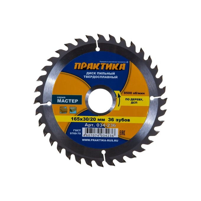 Диск пильный твёрдосплавный по дереву, ДСП Практика 165 х 30/20 мм (034-236) 36 зубов