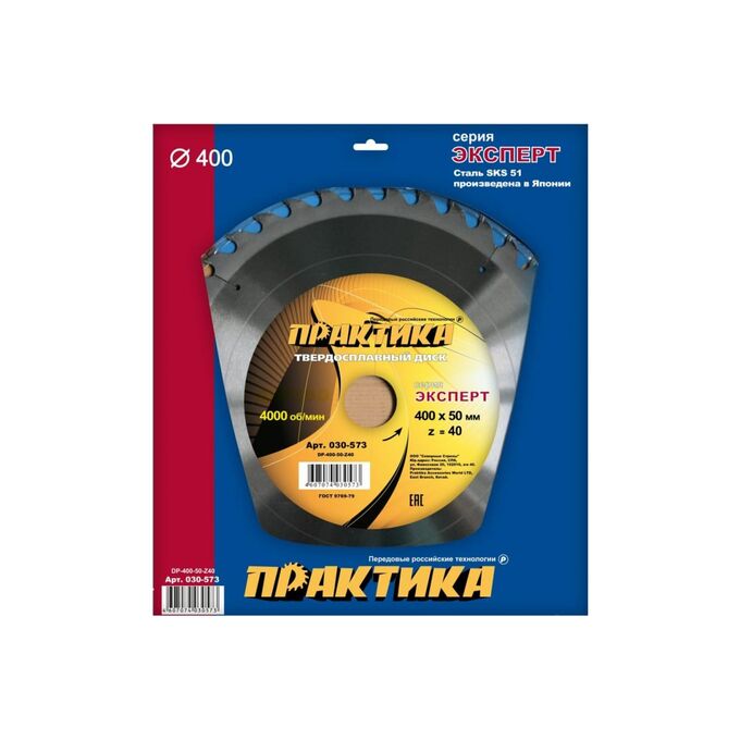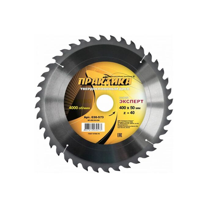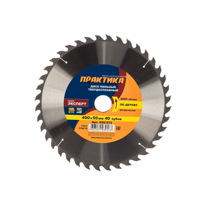 Диск пильный твёрдосплавный по дереву, ДСП Практика 400 х 50 мм (030-573) 40 зубов